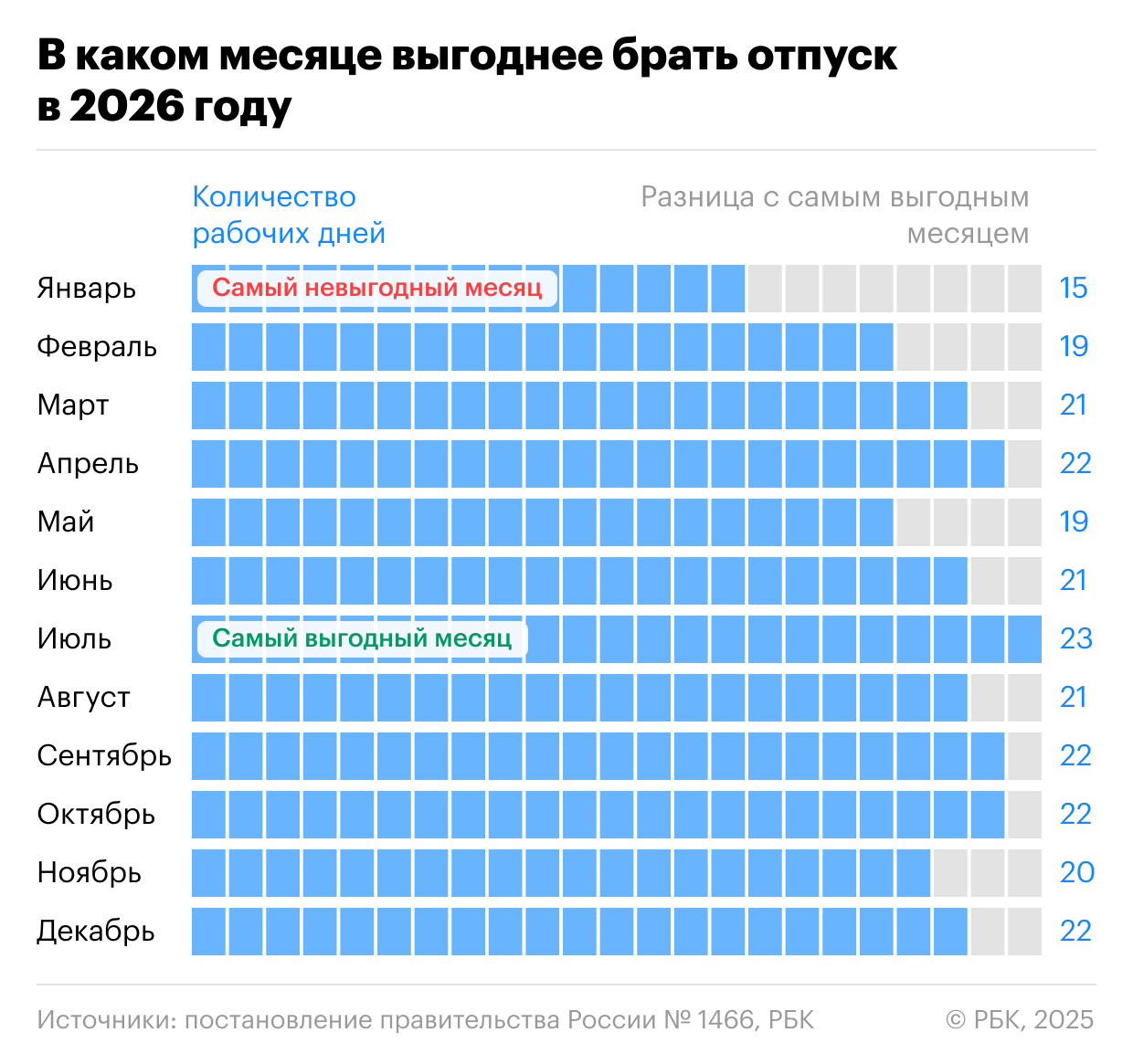 «Для максимальных выплат запланируйте отпуск на июль, август или сентябрь 2026 года. Это оптимально с финансовой точки зрения. Вы получите длительный летний отдых, и в расчетный период с большой вероятностью уже войдут все высокооплачиваемые месяцы конца 2025 года», — подчеркнула в беседе с РБК доцент Финансового университета при правительстве, кандидат экономических наук Эльвира Белозорова.