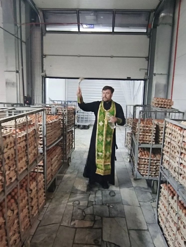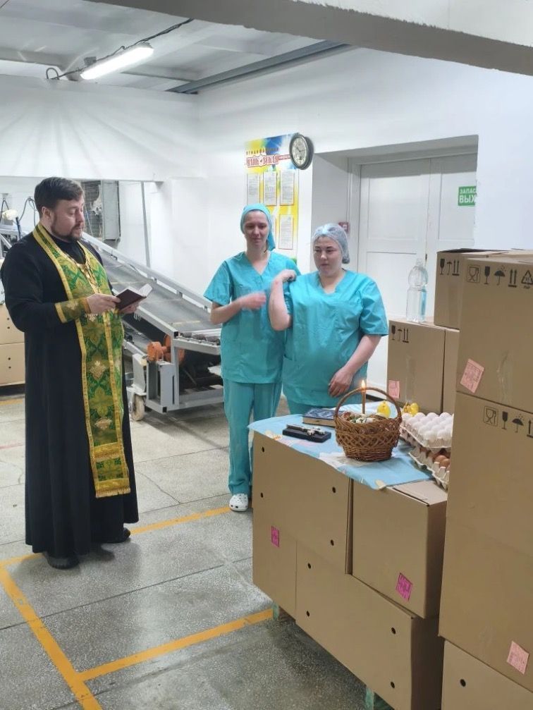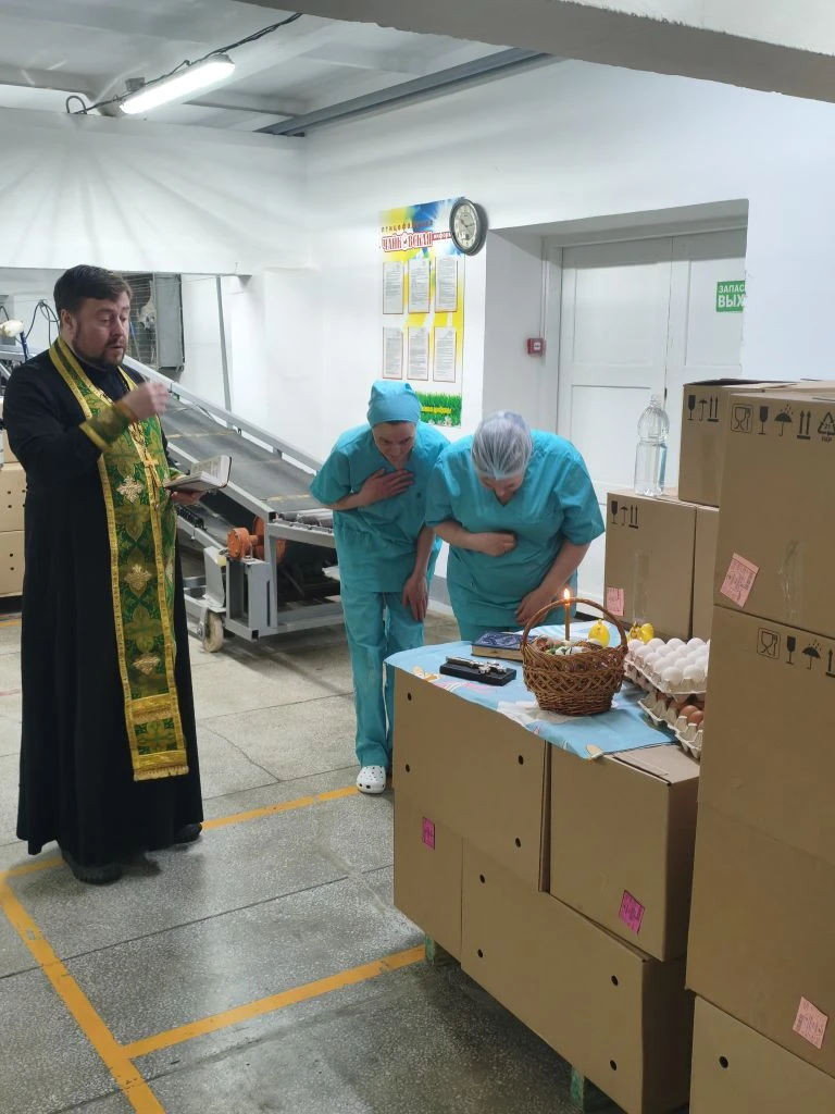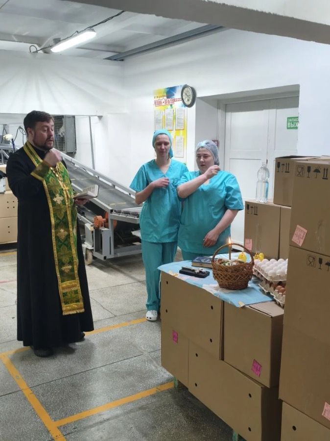 Традиционно, из года в год, руководители птицефабрики присутствуют на первой православной молитве освящения яйца, где совместно с журналистами и работниками сортировочного цеха становятся участниками благочистивой традиции.