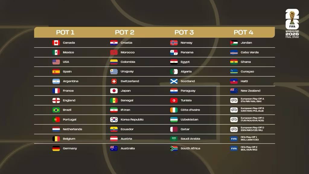 ФИФА объявила состав корзин для жеребьёвки группового этапа ЧМ-2026